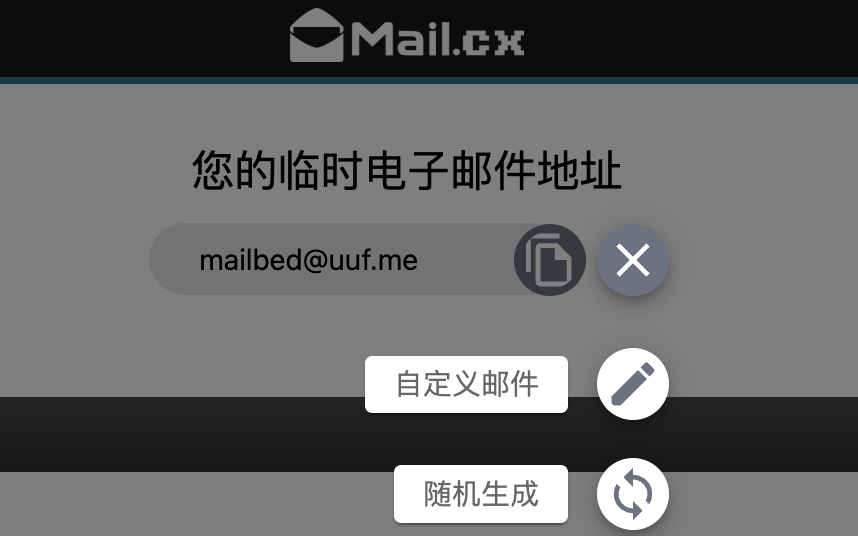 登陆https://mail.cx/zh,点击“笔刷✏️”图标,然后“自定义”自己喜欢的或“随机生成”均可;